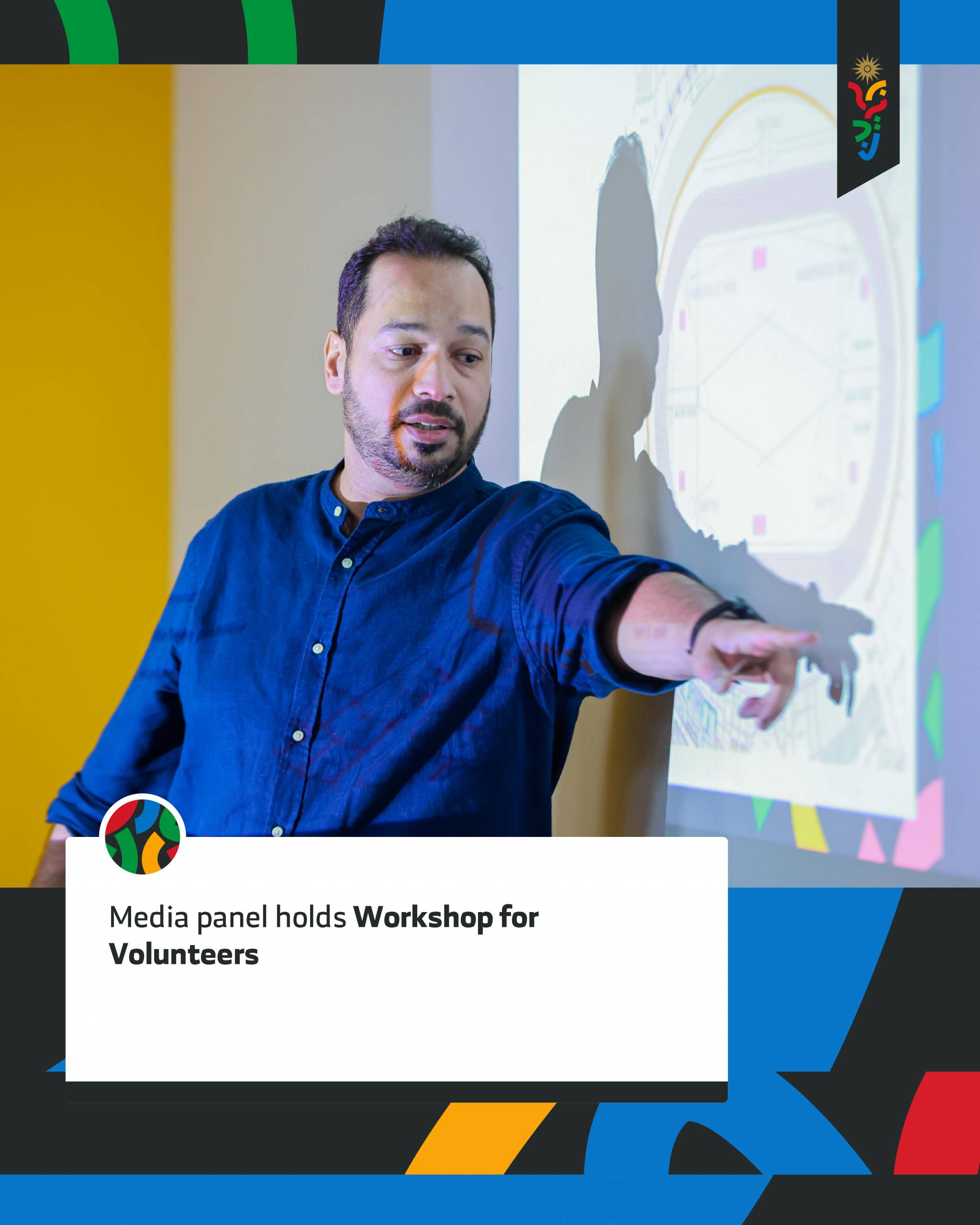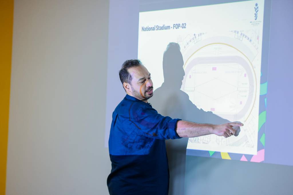 During the workshop, Mahmoud Al Mukhtar, the supervisor of the media centers, delivered a presentation outlining the roles and responsibilities of volunteers within the media centers. Additionally, Ali Al Halwachi, the photography manager, provided insights into the duties of volunteers on the fields and in the photographers’ areas, detailing the various tasks they will undertake to assist journalists.